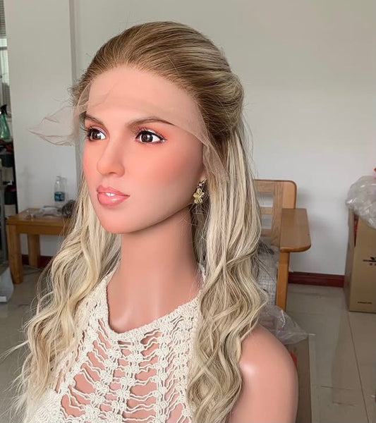 Jewish Wigs Blonde Balayage Virgin Human Hair Lace Front Wig